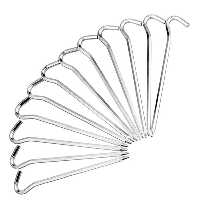 Metal tent pegs can be used to secure tents, canopies, puppy garden net, or to fix holiday decorations to the ground.