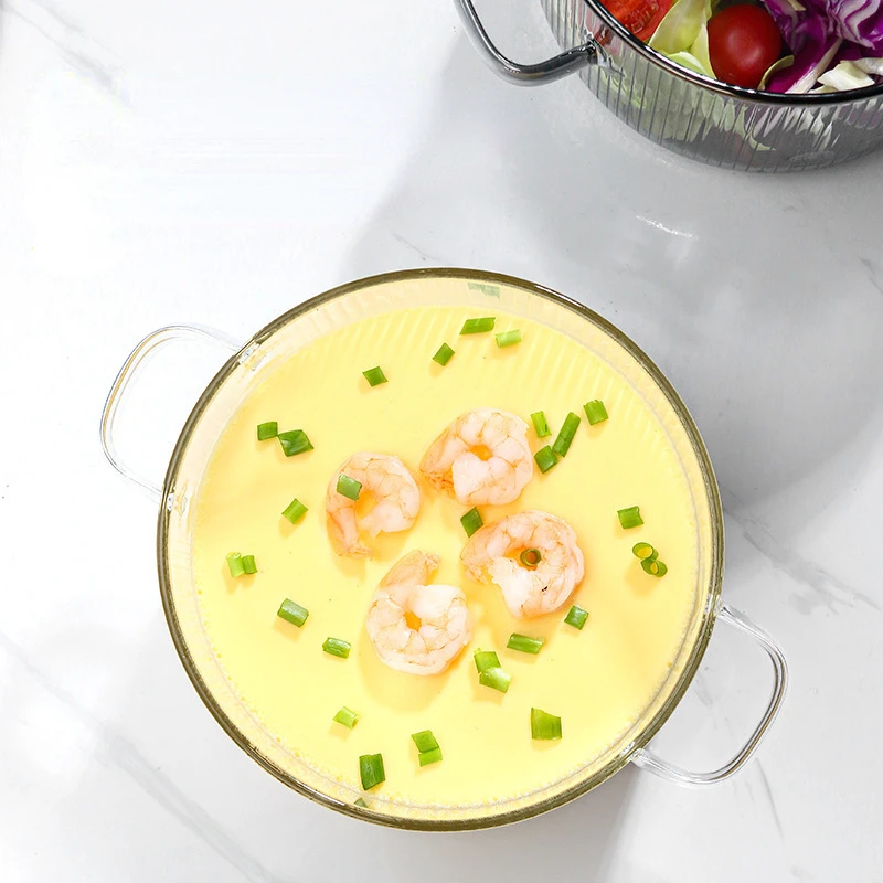 1Pcs Household Glass Saucepan for Cooking Double Ear Glass Soup Pot Noodle Bowl Glass Cookwares with Tops Small Bear Glass Pot