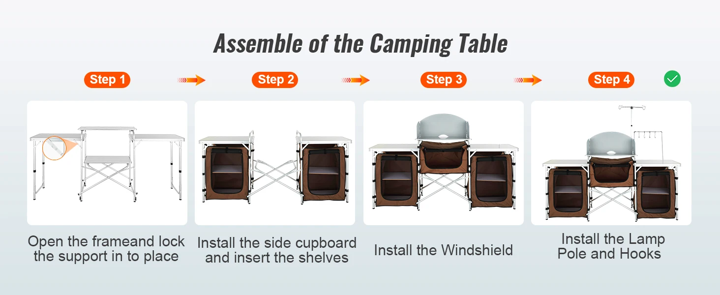 3. Marvel at its Quality: Our camping cooking table is built to last thanks to its aluminum tubes and a high-quality MDF countertop. The camp kitchen is designed with a reinforced X-shaped structure, which provides better stability and security during operation. And cleaning up is a breeze.