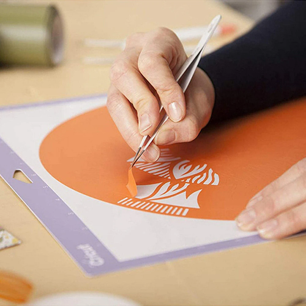 Hook Weeder & Tweezers: This vinyl weeding tools for vinyl hook weeder is great for removing tiny cuts, including negative pieces of vinyl and iron-on from the carrier sheet, or poking out tiny negative pieces from a cut cardstock image. Tweezers are designed with a reverse grip feature,you realize that it saves you a bunch of effort as you get about your crafting.